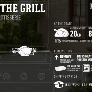$114.43Add to cartWith RC Willey, you can turn your grill into a backyard rotisserie using this Weber rotisserie tool for Genesis II and II LX grills. Slow-roast anything from a crispy yet moist whole chicken to succulent tender ribs. The rotisserie gently rotates food above the cooking grate producing succulent, self-basted meat directly from your backyard kitchen. Forks designed to hold both large and small cuts of meat Fits Genesis II 200 and 300 Series grills Includes stainless steel shaft, forks, handle, and hardware.