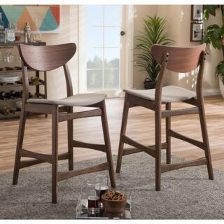 $137.23$113.90Add to cartBaxton Studio – Bar Stools – Latina BarstoolLight Grey – Latina bar stool is simple, organic design that combines everyday function with contemporary style. It is available in the different choice of wood and finish combination. Intricately curved backrest provides support while keeping a touch of modern artistry. The curved and cushioned seat promotes comfort and style. This contemporary stool is finished with a solid rubberwood frame that ensures long-lasting strength and stability. For a contrast effect, the seat is upholstered in gray polyester fabric with foam padding. Infuse your modern bar with the Latina counter stool and maintain a warm, welcoming atmosphere. Finish: Light Gray and WalnutMaterial: Polyester, WoodModern styleBentwood backrestContoured backrestStretchers supportsFoam paddedSpecifications:Overall Product Dimensions: 36.08″” H x 18.72″” W x 19.89″” DSeat Dimensions from Floor: 24″” H x 17.55″” W x 14.04″” DOverall Product Weight: 27 lbs.