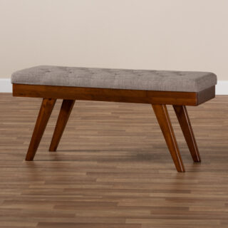 Baxton Studio Alona Mid-Century Upholstered Wood Bench in Gray