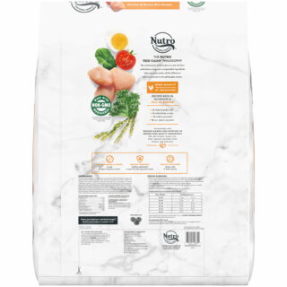 • Sometimes our senior pooches need a little extra something to keep them going. Nutro Wholesome Essentials Senior Farm-Raised Chicken, Brown Rice & Sweet Potato Recipe Dog Food always starts with great tasting, farm-raised chicken and is made a unique blend of whole grains, vegetables and fruit. This recipe is crafted to help maintain your senior dog’s cognitive health and has essential antioxidants to support your dog’s aging immune system. This natural dog food also contains Omega 3 & 6 fatty acids to promote healthy skin and a soft shiny coat, plus vitamins, minerals and other nutrients. Nutro Food for Dogs always follows the the Nutro Feed Clean philosophy, is always made with Non-GMO* Ingredients and contains no artificial flavors, colors or preservatives. Why We Love ItFarm raised chicken, with additional nutrients to support cognitive healthNutro Feed Clean philosophy ensures no GMO ingredients and no artificial preservatives or colorsMade in the USAAbout NutroOur dogs love to get dirty. Rainy games of fetch at the park, muddy walks in the woods, jumping into the lake, it’s all in a day’s work for our best friends. While our dogs get dirty, NUTRO has gone above and beyond to create clean recipes. With non-GMO ingredients (trace amounts of genetically modified material may be present due to cross-contact during manufacturing), no artificial flavors, colors, or preservatives, and with high quality, real proteins like real chicken, venison, and duck as the first ingredient in every recipe, NUTRO Feed Clean philosophy brings new meaning to dog food. With tailored, natural nutrition including grain-free, limited ingredient, high protein and more, all made in the USA, the highest safety standards, unmatched community involvement, and visible health benefits, NUTRO continues to show their commitment to providing high-quality, clean recipes so that our dogs can get back to doing what they do best – getting dirty. Nutro. Feed Clean. .