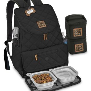$65.74Add to cartDog travel bag deluxe quilted weekender backpack. The company that brought you the original travel bags for dogs is back and better than ever, in backpack form. This backpack has and does it all. This bag comes equipped with a built in waste bag dispenser for ease of use. It also comes with 2 collapsible silicone bowls and placemat, which are not only removable, but also store conveniently in the front flap. There are 2 lined carriers to hold either food or treats for your k9 best friend. Flying is never an issue as this backpack meets airline carry-on requirements and even has its own luggage ID tag. Your next adventure awaits.. Features Travel easy, as the comfortable padded should straps are adjustable; Its also store conveniently in the front flap; Includes Lined food carriers and collapsible bowls; Specifications Color: Black; Weight: 1.73 lbs; .
