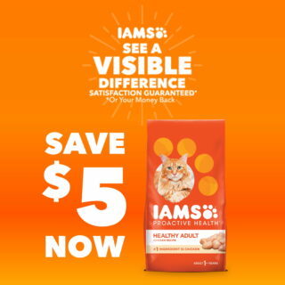 $100.75Add to cartMealtime matters. Iams Proactive Health Healthy Adult Dry Cat Food with Chicken is an everyday meal thats 100% complete and balanced to help adult cats stay on the path to health. This wholesome, tasty recipe is made with real chicken and healthy ingredients that provide essential nutrients for your adult cat. These essential nutrients, like potassium and calcium, can help nourish a healthy heart for your feline friend. As an added benefit, Omega 6 and 3 fatty acids in this adult cat food help nourish your cats skin, and promote a glossy, vibrant coat. Help keep your cat healthy, happy, and playful for life with tailored nutrition from the Iams brand.