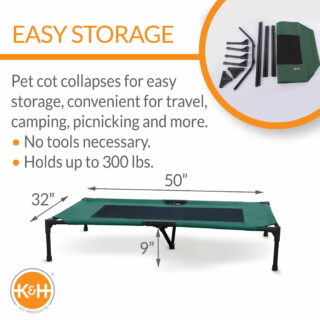 K&H Original Pet Cot Elevated Pet Bed, 32″ L X 50″ W, Green, X-Large, Black