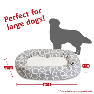 $62.14Add to cartThe Fusion Sherpa Bagel Bed by Majestic Pet provides superior comfort for your dog. This bed makes a fashion statement in any room, the bolster is made of a fashionable Cotton Twill printed fabric and a Sherpa center cushion. The bed is filled with super premium high loft polyester fiber fill, which ensures a snug rest anywhere in the house. To keep the bed safe from accidents or spills, the base is made of a heavy duty, waterproof 300 by 600 Denier. Our bagel beds are easy to clean for 24-Small and 32-inch Medium sizes just place the entire bed in the washer on gentle cycle and air dry – for 40-Large and 52-Extra Large beds remove the zippered slipcover and place in washer on gentle cycle and air dry. Do not wash insert.. Features Cotton Twill bolster with faux Sherpa sheepskin center cushion; 300 by 600 Waterproof Denier Base; Zippered slipcover for easy washing; place slipcover in washer on gentle cold and then dry on low; do not wash insert; Made in USA of US and imported materials; Bolster made of Cotton Twill; Center cushion made of Polyester faux sheepskin Sherpa; Easy to clean- remove the zippered slipcover and place in washer on gentle cycle and air dry; Filled with recycled premium Polyfiber fill; Recommended for dogs 45 to 70 lbs; Care Instructions: Spot clean slipcover for best results; or remove slipcover and place in washer on gentle cold and dry on low, do not dry insert; Specifications Color: Gray; Size: Large; Pet: Dog; Assembly Required: No; Country of Origin: USA; Cushion Dimension: 8″ H; Bolster Dimension: 9″ H x 8″ W; Outside Dimension: 29″ W x 40″ L; Inside Dimension 18″ W x 30″ L; Dimension: 9″ H x 29″ W x 40″ L; Weight: 9 lbs; .