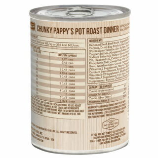 $38.28Add to cartGive your dog the taste of a pot roast dinner with each serving of Merrick Chunky Grain Free Wet Dog Food Pappy’s Pot Roast Dinner Recipe. The first ingredient in this delectable beef dog food is always real, wholesome USDA-inspected deboned beef. Pop open a can of this adult dog food and fill your dog’s bowl with the big chunks of beef and hand-stuffed red jacket new potatoes and carrots in a mouth-watering gravy. This grain free canned dog food recipe makes any mealtime special, and the addition of a savory gravy gives your dog something to look forward to. All Merrick canned recipes can be served as a topper for dry kibble or a standalone meal. Like all Merrick recipes, this moist and meaty dog food formula was crafted in our Hereford, Texas kitchen and cooked in the USA.Why We Love It Grain-free with easy to digest carbohydrates like potatoes Real farm fresh chunks of beef About MerrickMerrick isn’t your typical pet food company, and Merrick doesn’t just make pet food. Merrick makes the best food ever for the best pet ever. Yours. The five star promise from Merrick is what’s guaranteed to each and every dog and cat, along with their owners. Local growers, real whole foods, their own kitchen, balanced nutrition, and health you can see. Merrick creates real, wholesome recipes using USDA-inspected deboned meat and fresh produce for industry leading levels of protein, glucosamine and chondroitin. All of Merrick’s foods are handcrafted in Hereford, Texas from USA farmers they know and trust. With no additives, sweeteners, colors or preservatives, real whole foods including high quality meats and fresh caught fish are the core of every Merrick dog and cat food. Merrick has been cooking their own foods in their own Texas kitchen for over 25 years. They stand behind their products with a 100% guarantee, promising that your dog or cat will be happier and healthier. You are what you eat, so why not feed your best friend the very best? .