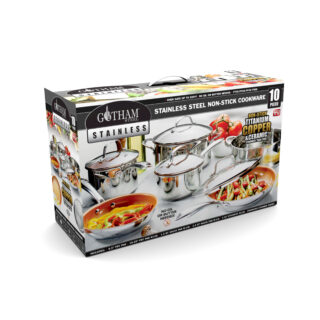 $45.75Add to cartRevolutionize the way you cook and the way your kitchen cabinets look with Gotham Steel stackable space saving cookware. Constructed with a triple coated cast-texture coating, this Gotham Steel stackable is the perfect balance for ultra-nonstick and long-lasting durability. They can withstand metal utensils and are dishwasher safe for easy clean up. Gotham Steel stackable cookware has a unique design that saves 30% more cabinet space, it allows the aluminum pans, pots and glass lids to nest together as a secure stack. This cookware set features popular pots and pans needed for everyday cooking, baking, and even roasting. Color: Copper.