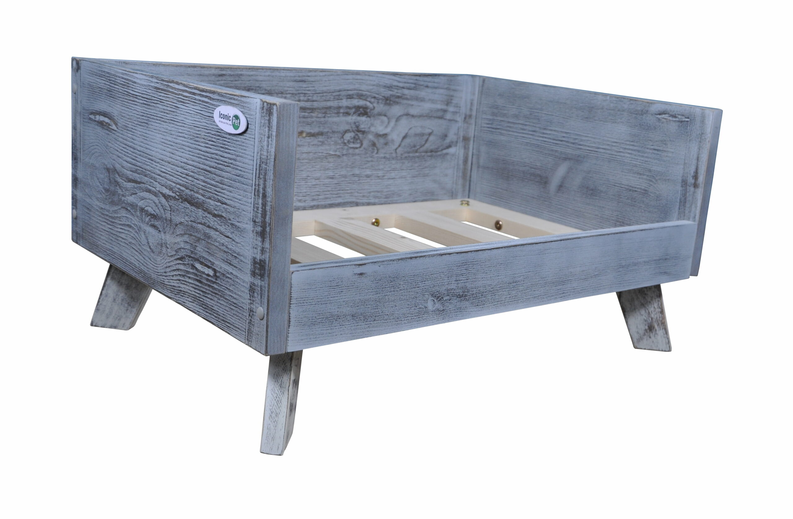 Iconic Pet Sassy Paws Raised Wooden Pet Bed with Removable Cushion for Dogs & Cats – Antique Gray – Medium