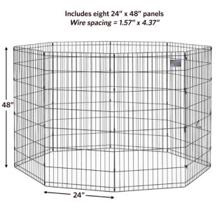 IRIS USA 24” Exercise 4-Panel Pet Playpen with Door, Gray: Dimensions: 35.25″L x 35.25″W x 23.63″H Ideal for play, exercise or training, indoors or out Made of durable, heavy-duty molded plastic Easy to assemble Non-skid rubber feet to protect floors