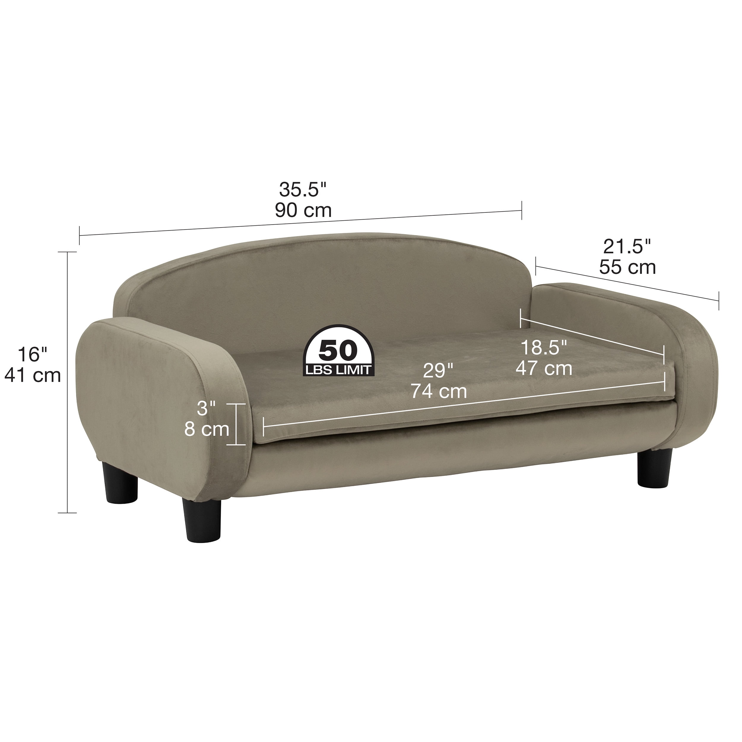 Overall Dimensions: 35.5″ W x 21.5″ D x 16″ H PET FURNITURE FOR YOUR FURRY FRIENDS: Low lounging couch-shaped cat and dog sofa for small to medium dogs, cats, and other pets with ready-to-assemble back and legs that match your home dcor DOG AND CAT BED FOR MEDIUM-SIZED PETS: Dog and cat bed with a scaled-down design for small to medium-sized pets such as cats, medium dogs, and rabbits COMFORTABLY DESIGNED PET FURNITURE: Plush and comfortable 3″ foam padding designed to provide your furry friend with a cozy and relaxing spot to rest REMOVABLE WASHABLE COVER: Zippered mattress cover is durable and easy to clean with a removable and machine-washable cover