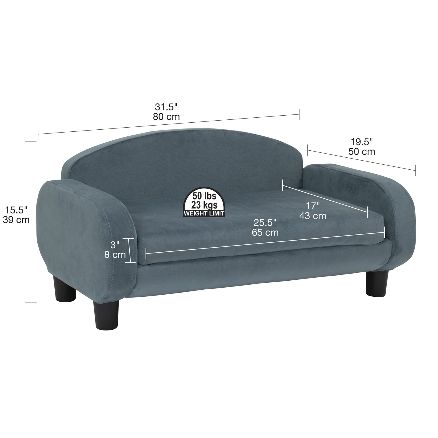 Overall Dimensions: 31.5″ W x 19.5″ D x 15.5″ H PET FURNITURE FOR YOUR FURRY FRIENDS: Low lounging couch-shaped cat and dog sofa for small dogs, cats, and other pets with ready-to-assemble back and legs that match your home dcor DOG AND CAT BED FOR MEDIUM-SIZED PETS: Dog and cat bed with a scaled-down design for small to medium-sized pets such as cats, small dogs, and rabbits COMFORTABLY DESIGNED PET FURNITURE: Plush and comfortable 3″ foam padding designed to provide your furry friend with a cozy and relaxing spot to rest REMOVABLE WASHABLE COVER: Zippered mattress cover is durable and easy to clean with a removable and machine-washable cover